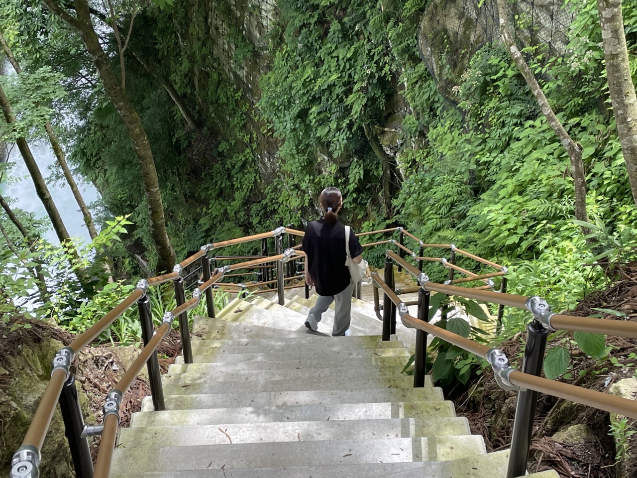 下りている最中は滝からの水しぶきがかかり冷たい!