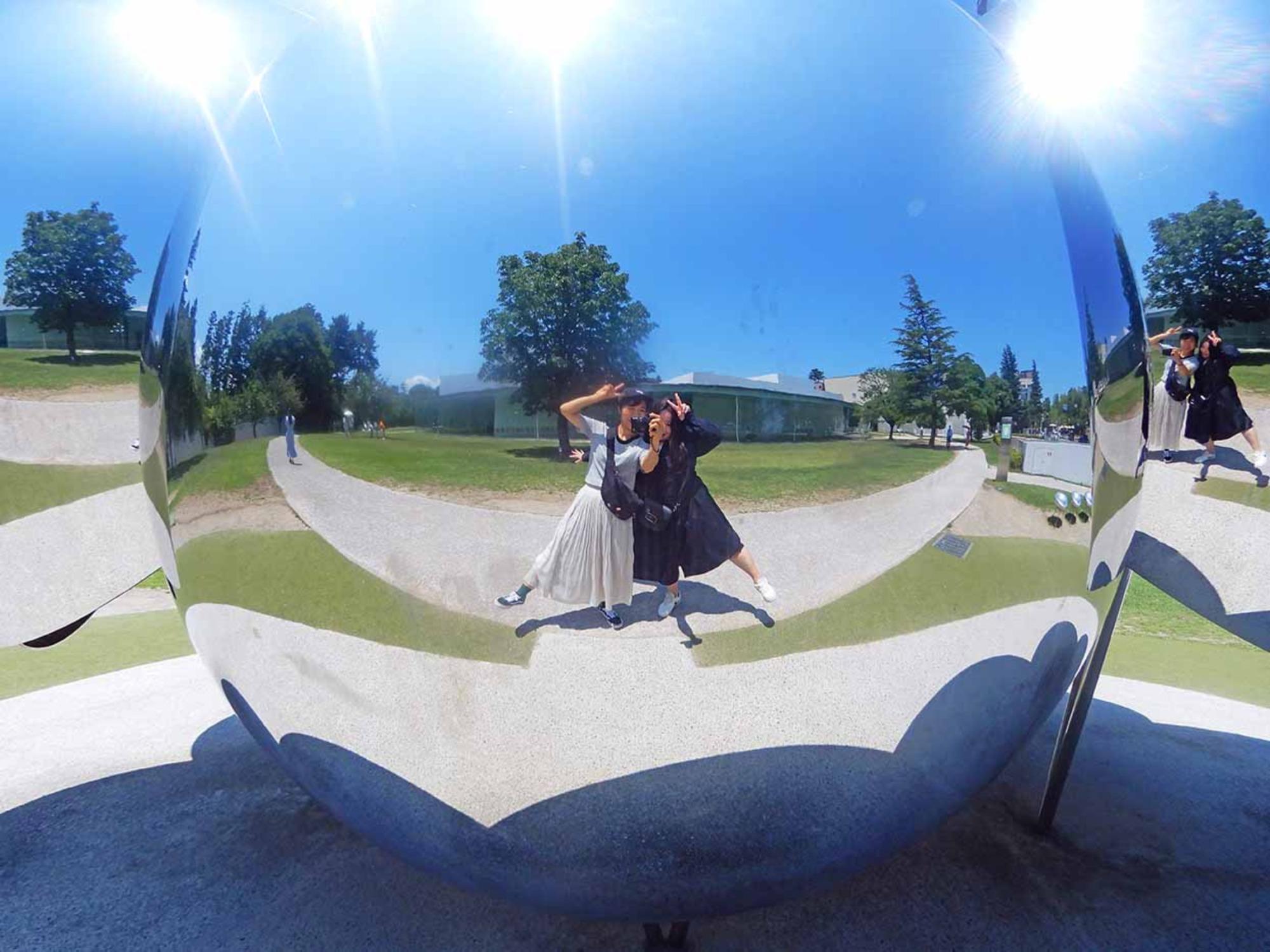 さらに、「まる」は内部に入ることもできます。鏡面に小さな自分がたくさん写り込んで、SF映画の世界みたい・・・不思議空間にわくわく!