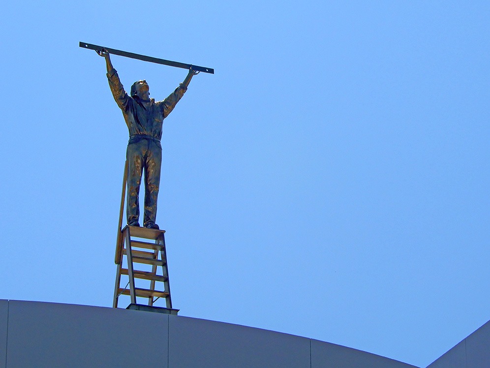 「市民ギャラリー 2004.10.09 -2005.03.21」を背に立つと、ちょうど向かいに見えるのがこの「雲を測る男」。