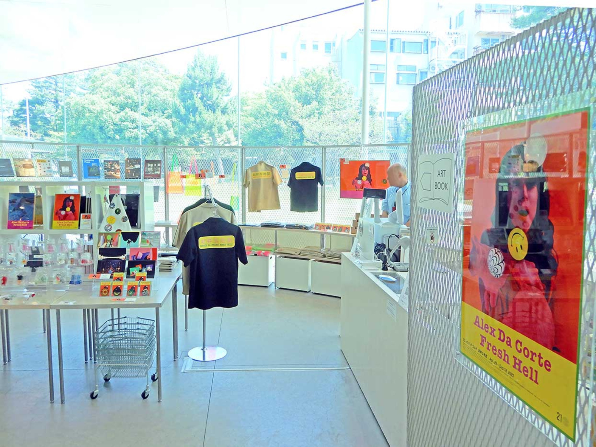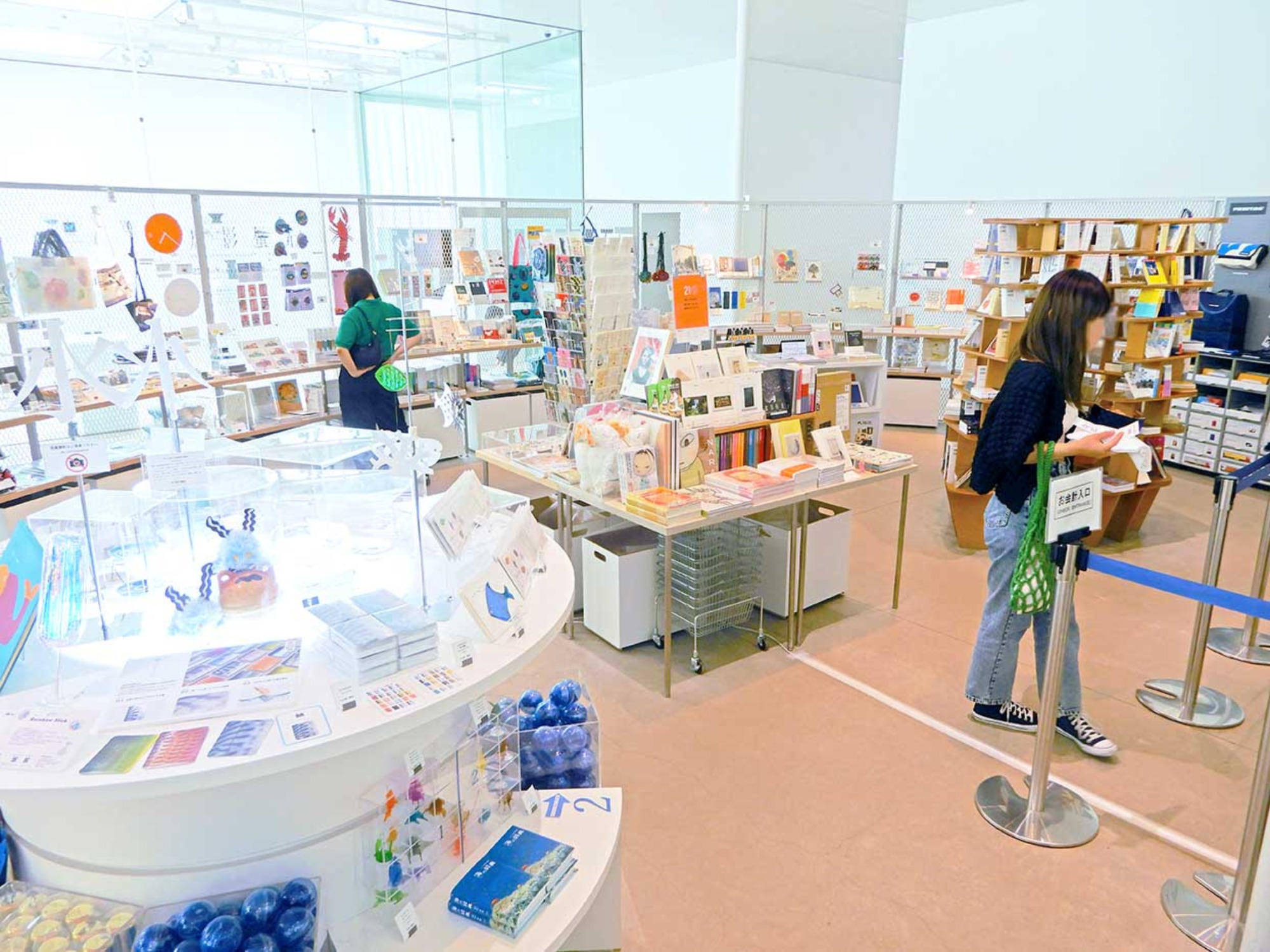 丸くフェンスに囲われた2つのミュージアムショップ。デザイン性に優れたグッズや日本のアート関連書籍の販売がメインの売り場と、開催中の特別展オリジナルグッズがメインの売り場に分かれていました。印象に残った作品をお土産として形に残すのにも良さそうですね!