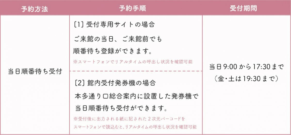 スイミング・プールの予約も展覧会チケットも、週末や大型連休などは当日券販売窓口が混雑します。「絶対に見る!」と心に決めているなら、前売り券を買う、WEB予約を利用するなど早めの行動がおすすめです。