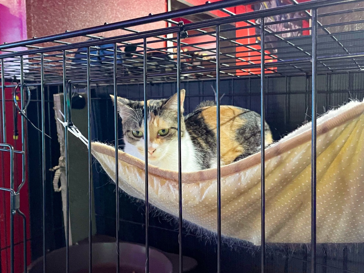 店内には、見覚えのある看板猫さんがケージの中からこちらを見つめていました。とっても可愛いです…!!!