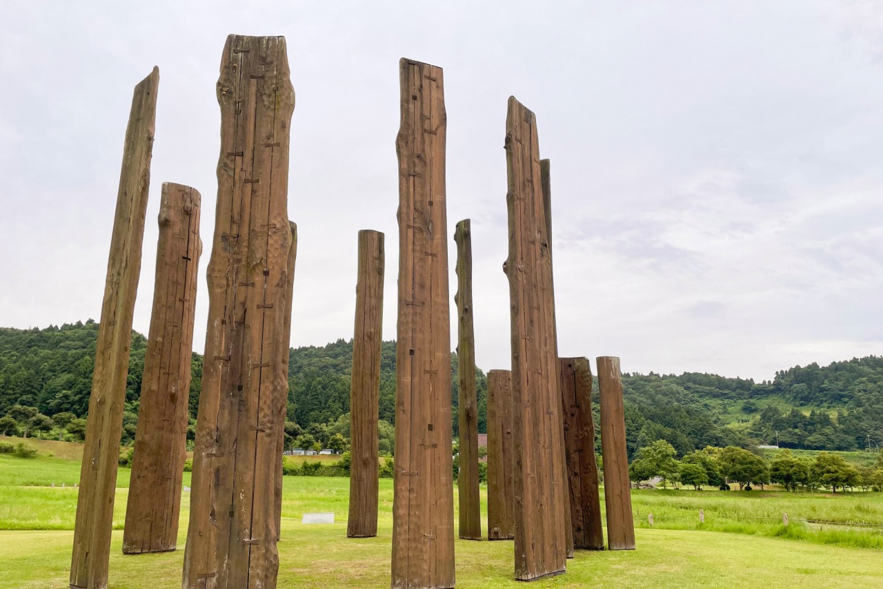 広大な敷地にぽつりと立つ巨大な「環状木柱列」はパワースポットとして知られています。