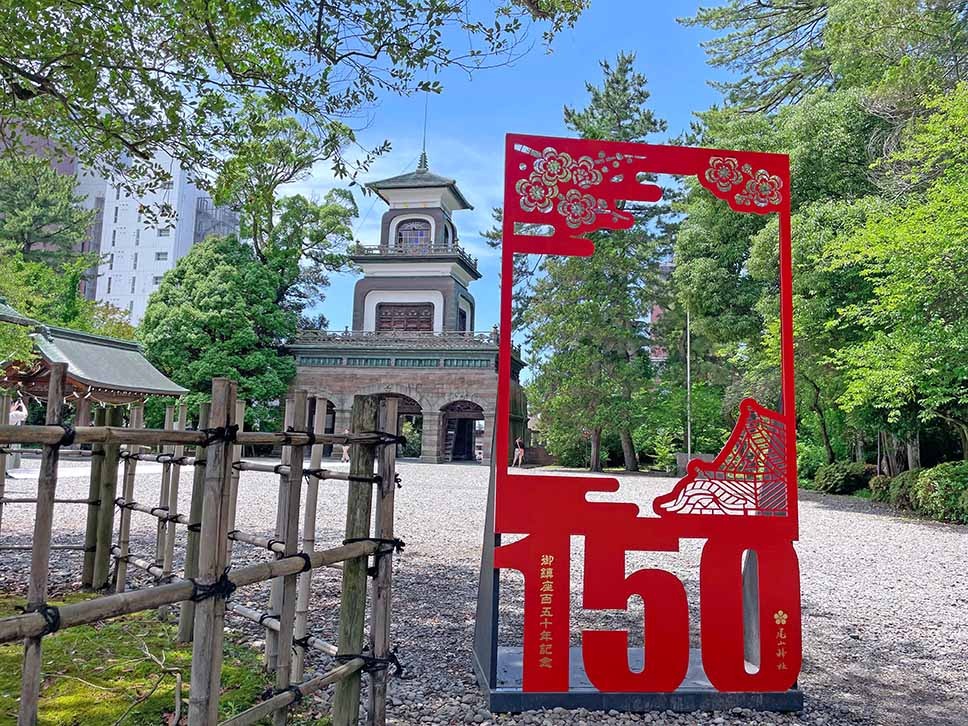 金沢のシンボルのひとつ「尾山神社」。お祀りされているのは、加賀百万石の領地を一代で築き上げた前田利家公と、献身的に彼を支えた正室のお松の方。