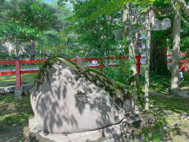 夢牛は撫でると夢が叶えてくれると言われています。そのほか、神門の手前にある放生池にはイボをこすると取れるといわれる「いぼとり石」もありますよ。