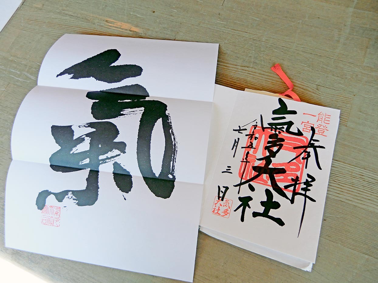 能登國一宮 気多大社の御朱印は社務所で直書きしていただけます。初穂料は300円。御朱印と一緒に和紙に「氣」が記された「縁起物」もいただけます。こちらは方位などは関係なく、家の中の好きな場所に貼っておけば良い「気」を集めてくれるそうです。