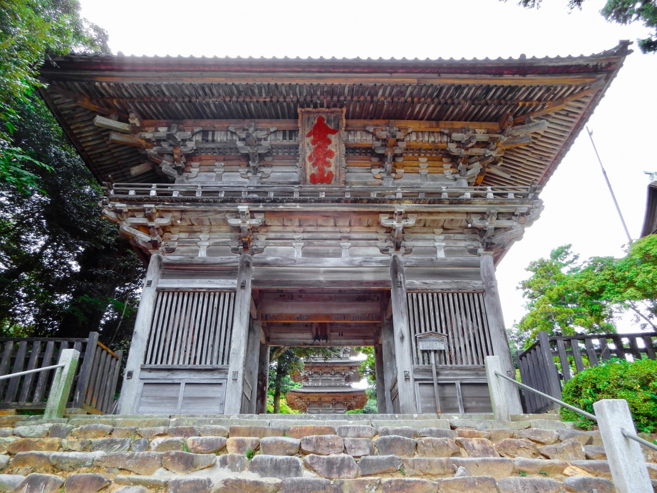 思わず立ち止まってしまうほど立派な山門は、昭和7年に完成した総欅(けやき)造り。高さ17.4m、間口20m、奥行き14.4mもあり、実物は写真よりずっっっと大きく感じました。2階の正面にある「諸嶽山(しょがくさん)」の扁額(へんがく)が畳1枚分の大きさと言えば、この壮大なスケール感が伝わるでしょうか・・・?