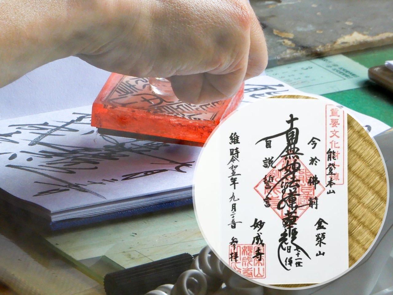 妙成寺の御朱印は寺務所で直書きしていただけます。御朱印代は300円。この日は御朱印帳を忘れてしまったのですが、奉書紙に書いたものも頂けました。