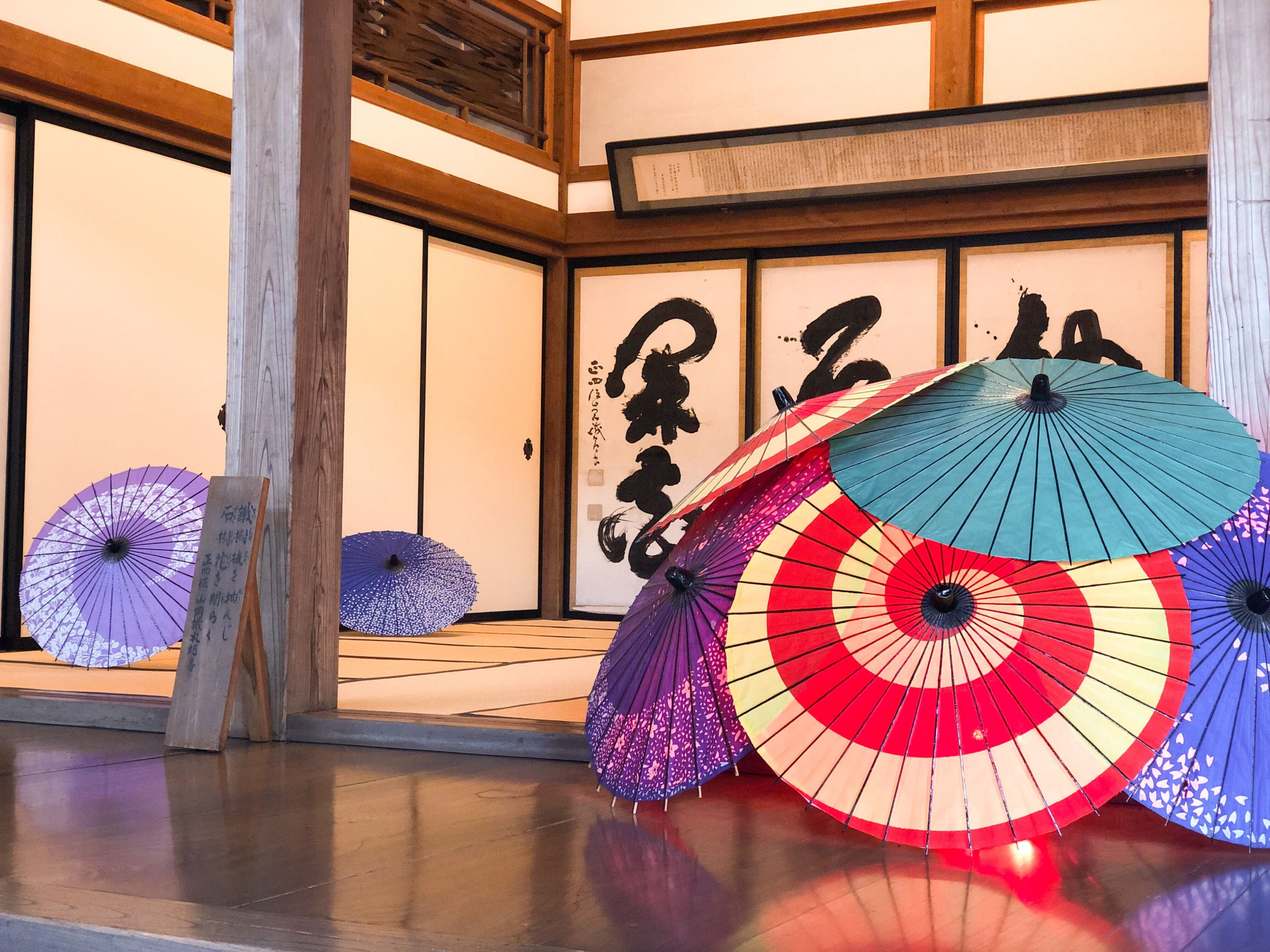 時期ごとに様々な催しが楽しめるのも總持寺祖院の魅力のひとつ。私が参拝した際は、回廊や畳の間を和傘で彩るライトアップ企画「ワガサイロ~wagasairo~」が開催中でした。