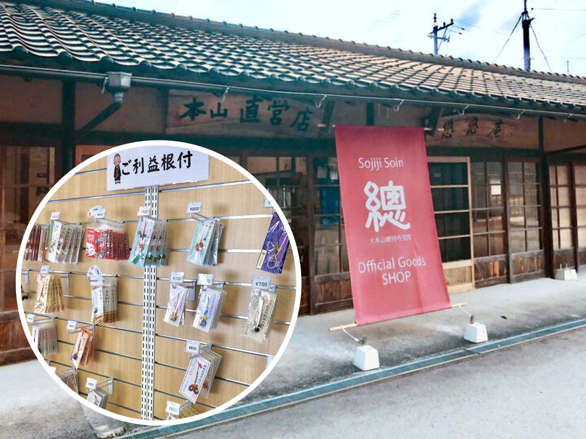定番のお守りは香積台に、山門を出た先のオフィシャルグッズショップにはお土産に重宝しそうなストラップ守りがありました。