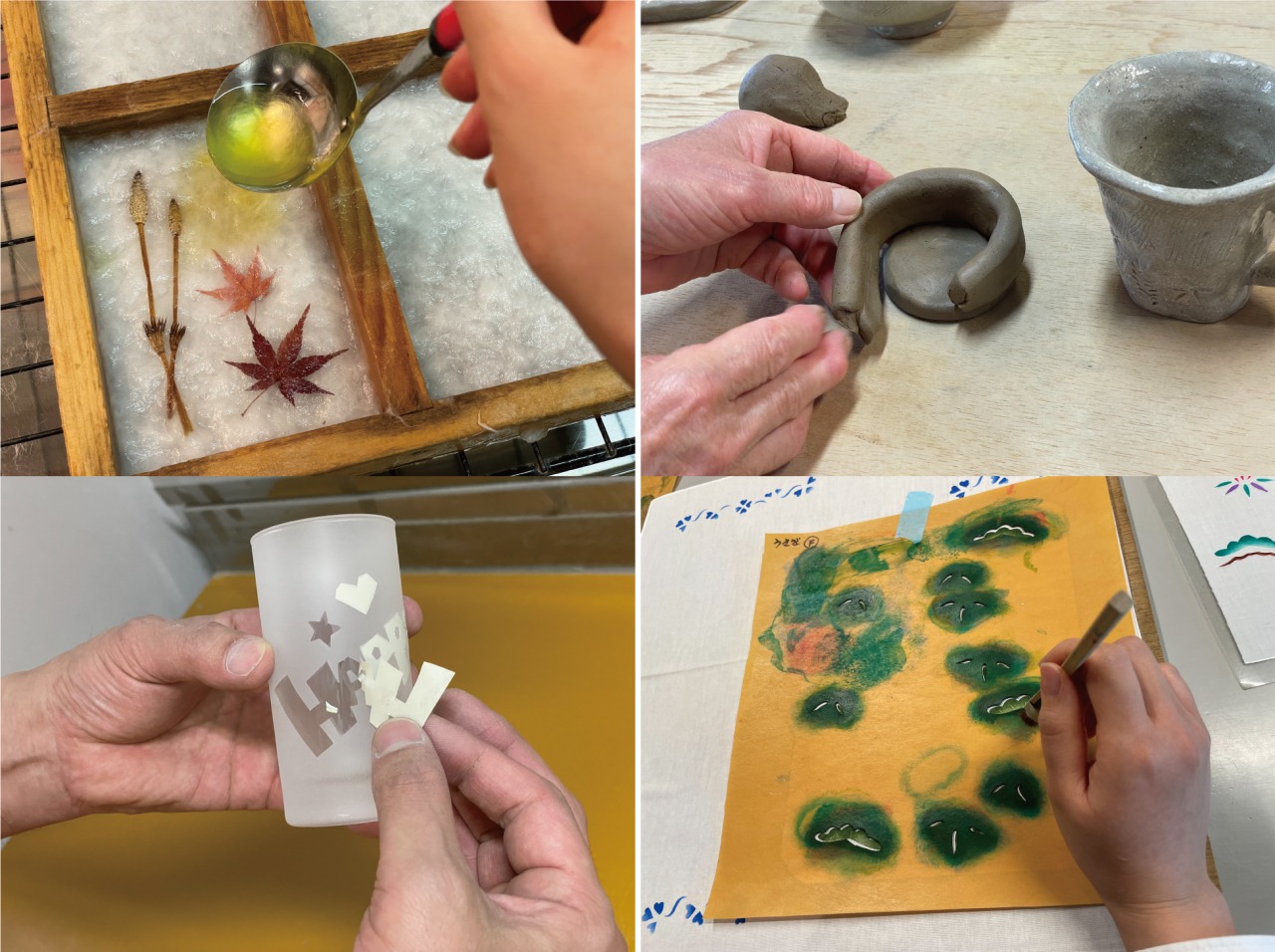 九谷焼ろくろ回しやサンドブラスト、手びねりや紙漉き(かみすき)など50種類以上の工芸体験ができます。