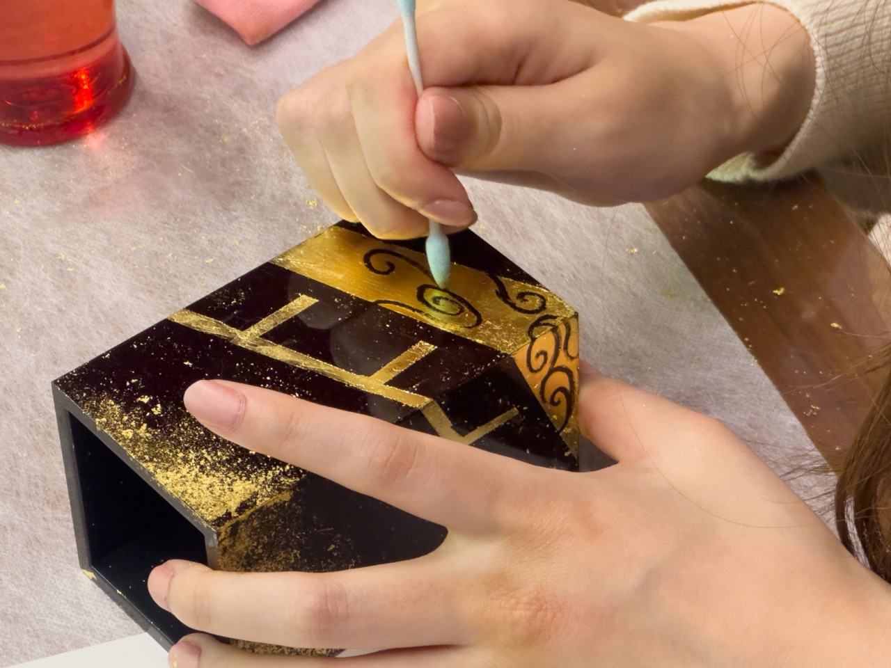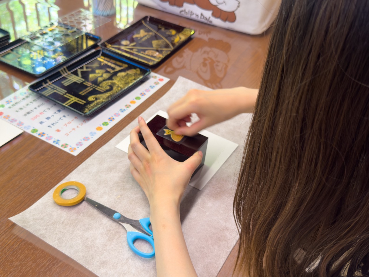 初めての金箔はり体験でしたが、金箔を貼る時やマスキングテープを剥がす時が一番ドキドキしました。
