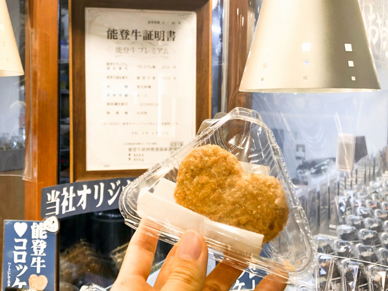 サイドメニューにオリジナルコロッケもあります。ハート型がキュートなこちらのコロッケは、ほくほくのジャガイモと「能登牛プレミアム認定」を受けた能登牛を使用。