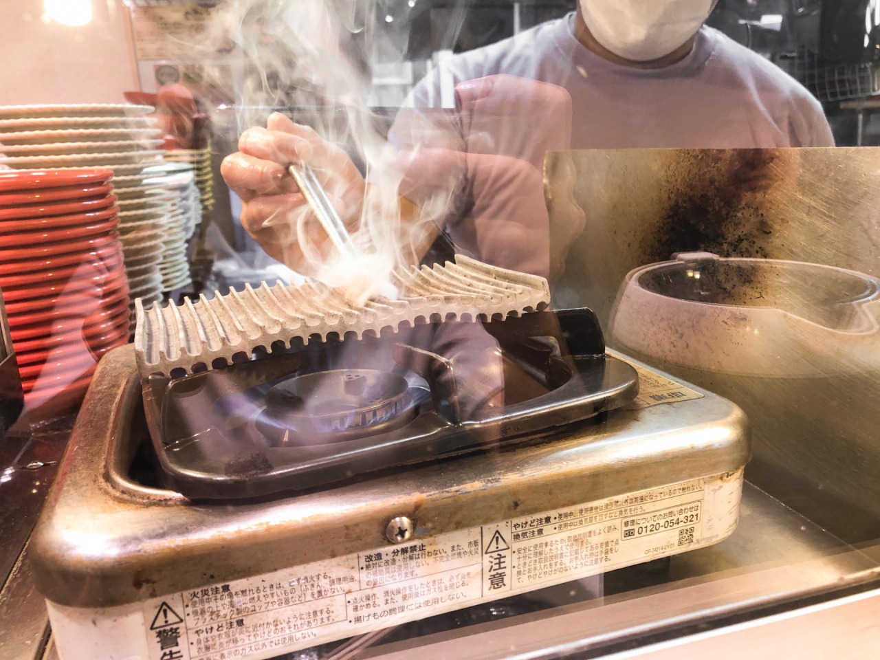 お米は県産コシヒカリ。香ばしく炙ったのどぐろの切り身と一緒に炊いていきます。注文を受けてから一つ一つ丁寧に炊き上げるため20分ほど待ちましょう。ちなみに今回は、特別に調理しているところを撮影させていただきました。待っている間もお米の炊けるいい香りにワクワク。