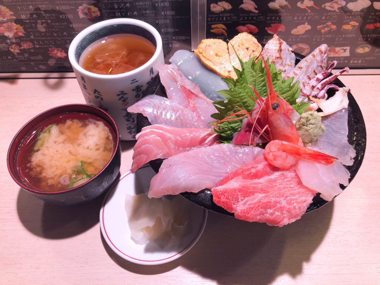 こちらのセットには嬉しいお味噌汁つき。内容は日替わりで、この日は鮭のアラ、海老、ネギの北海汁でした。アラといいながらよく見ると結構「身」が残ってる…ラッキー! こちらもいいダシが出ていて美味しかったです。