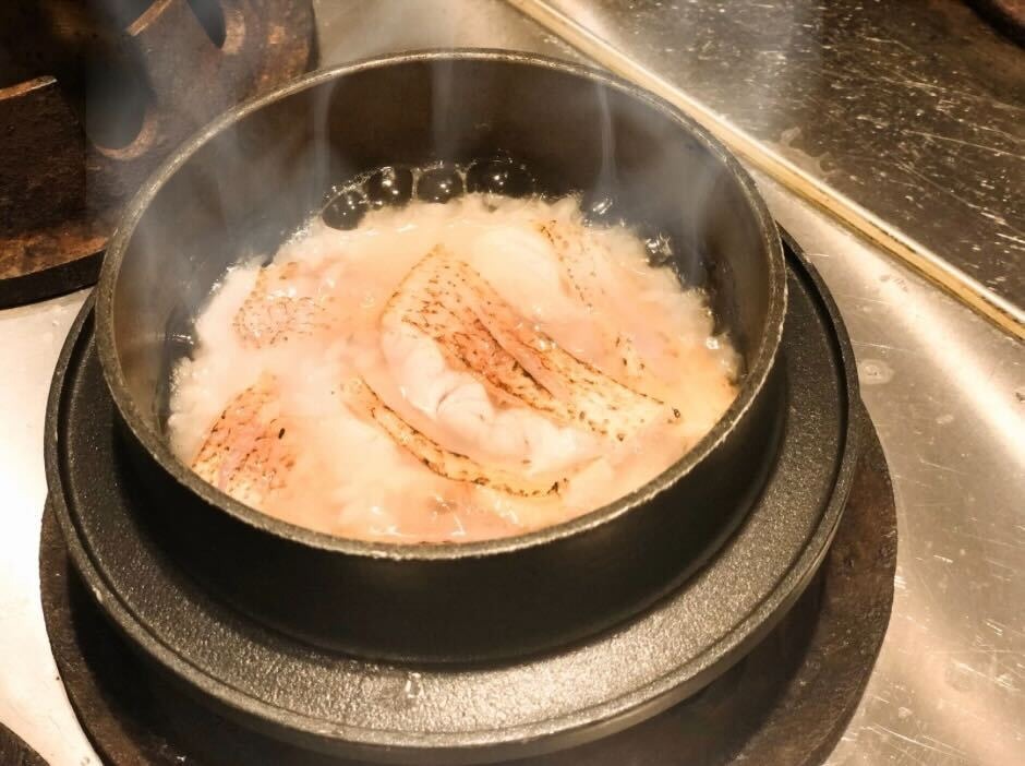 のどぐろのアラから作った出汁をかけて、最後までのどぐろの旨味を堪能!