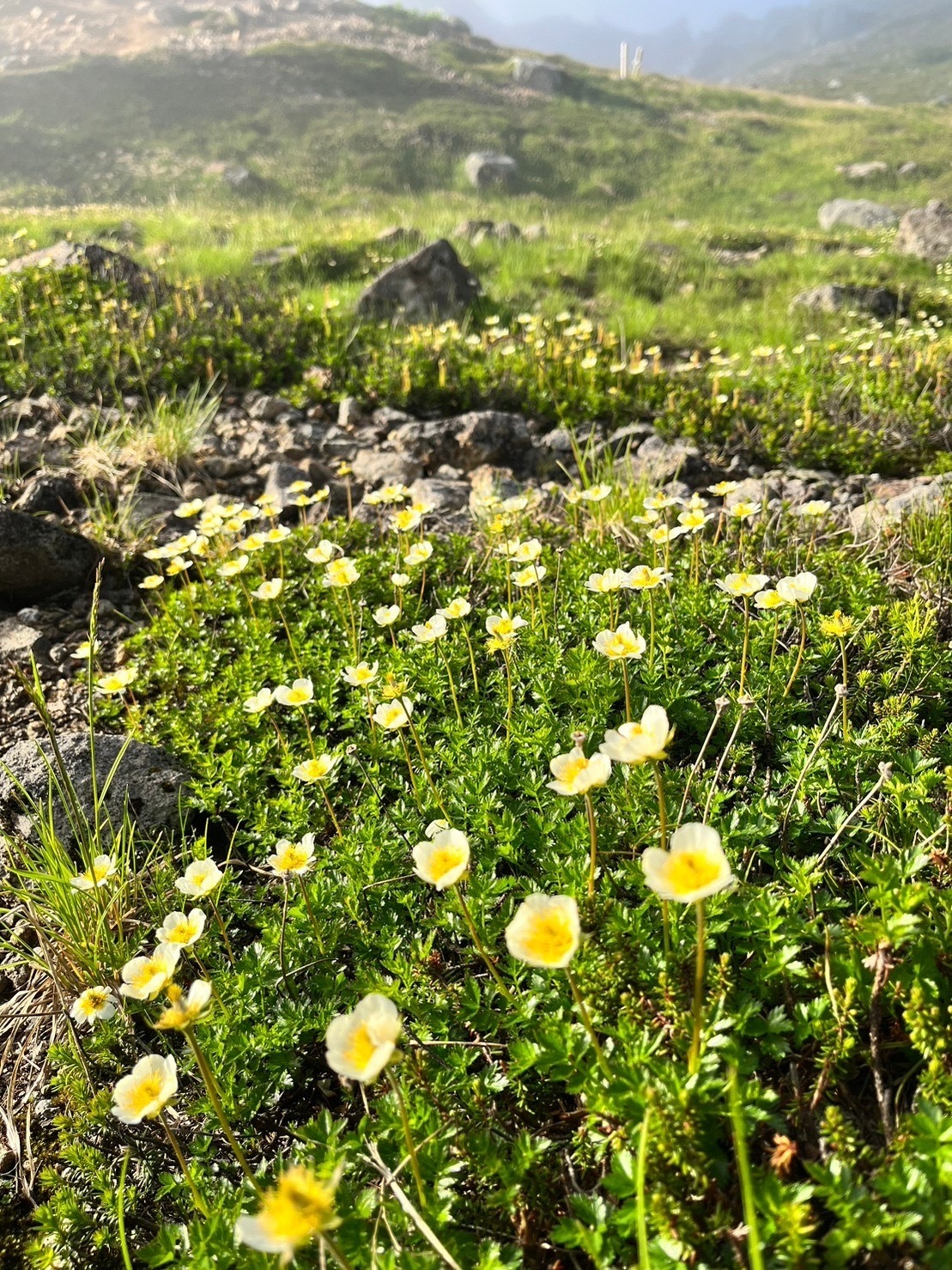 ここ一帯は高山植物のお花畑が広がり、山肌を埋めつくす花々に思わず見とれてしまいます。
