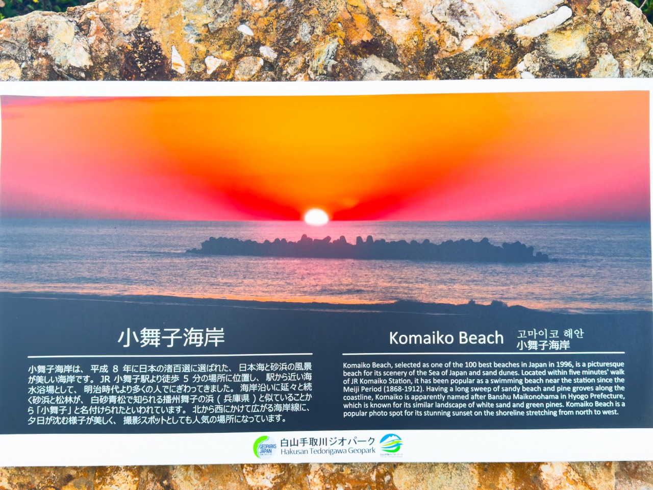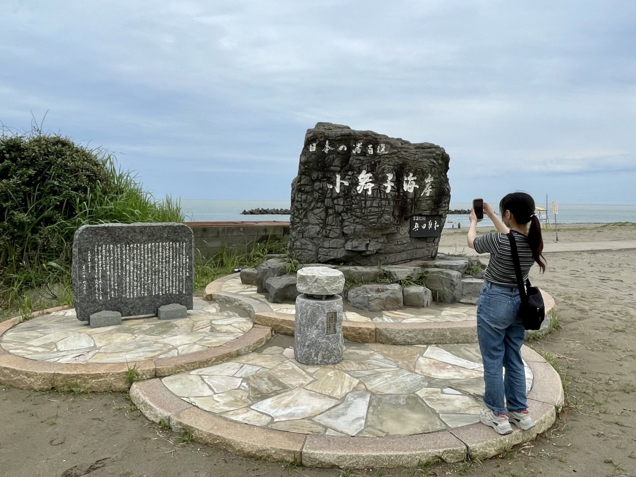 「小舞子海岸」の砂浜の砂の多くは、手取川が白山などの上流域から運んできたものです。
