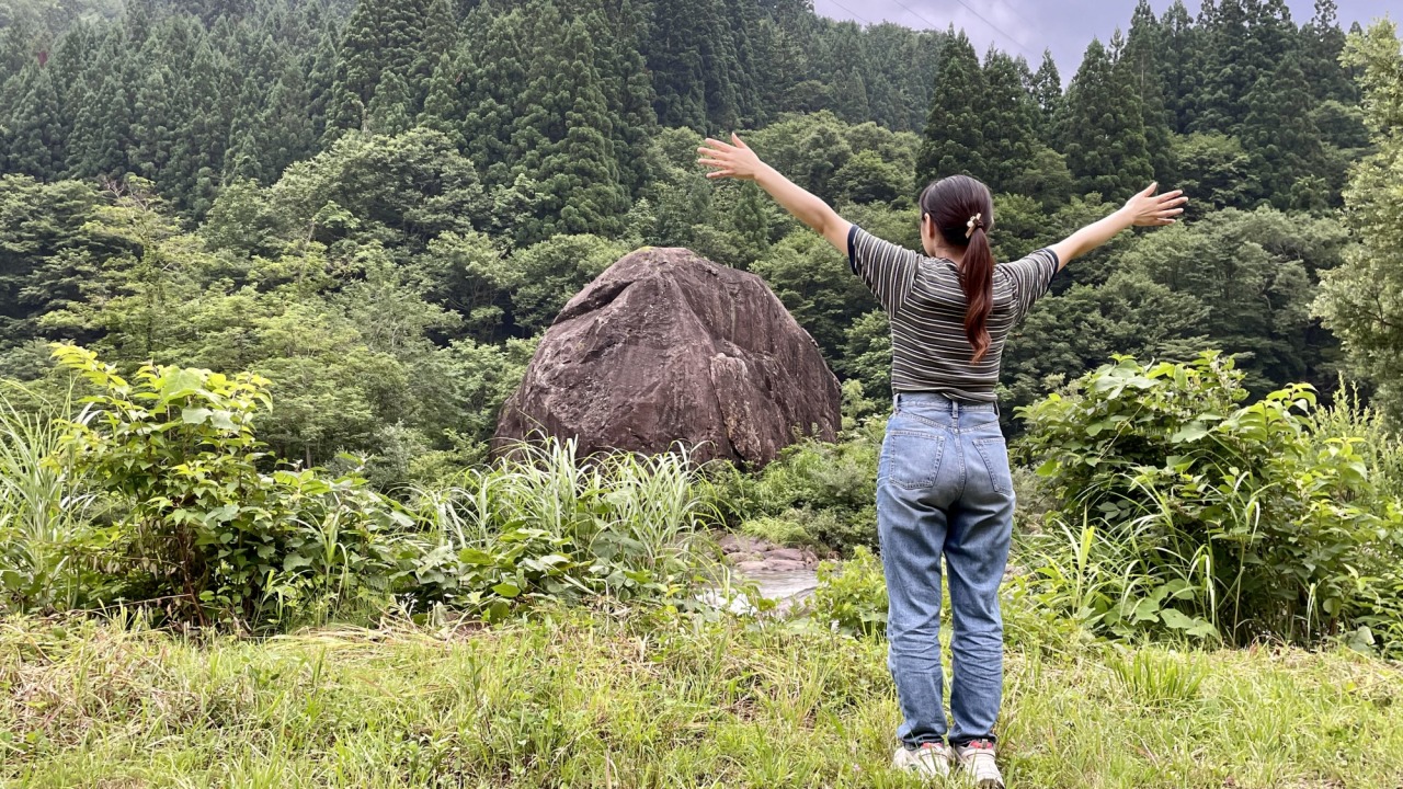 百万貫の大きさは高さ約16m、周囲約52m、重量は約4,800tで、私の何倍もある大きな岩です!