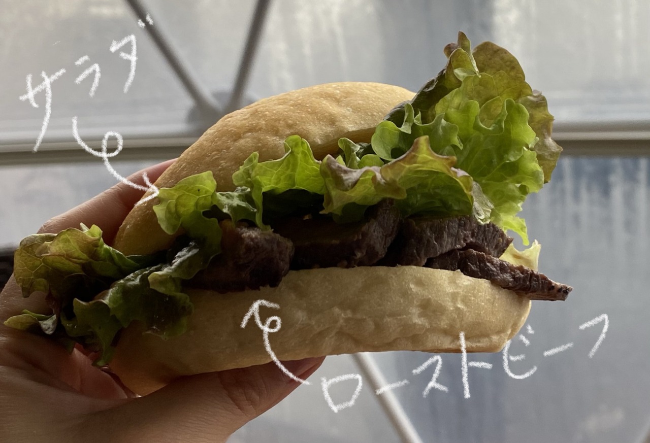 ローストビーフを切って、パンに挟みます。ここでも少しキャンプ気分を味わえるのが楽しいです!