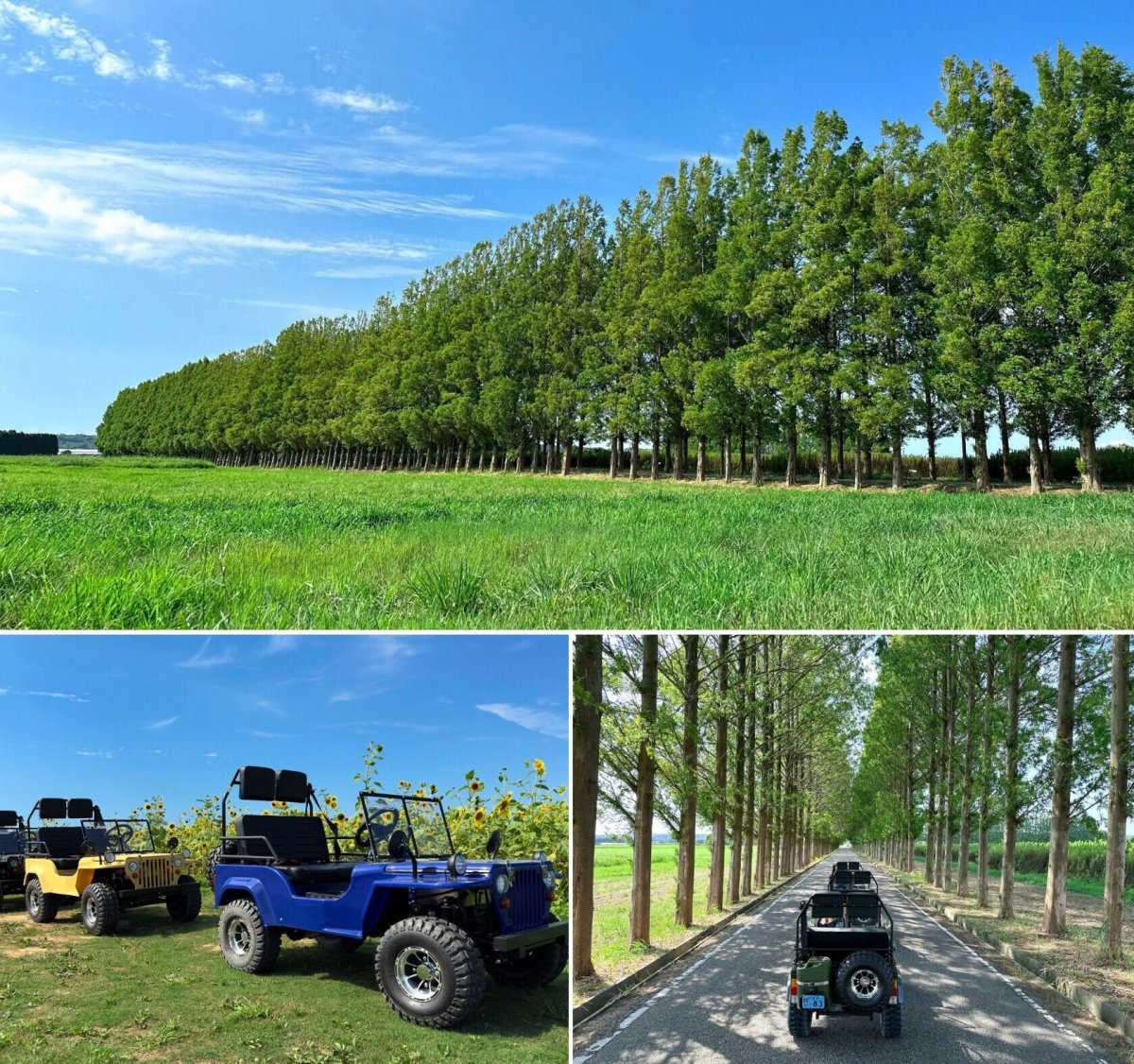 ジープのようにおしゃれな車体は1人乗りのコンパクトサイズでとってもキュート!意外にも操作は簡単で、ガイドさんによる乗車講習もあるから初めて乗る私たちでも安心して楽しむことができました。