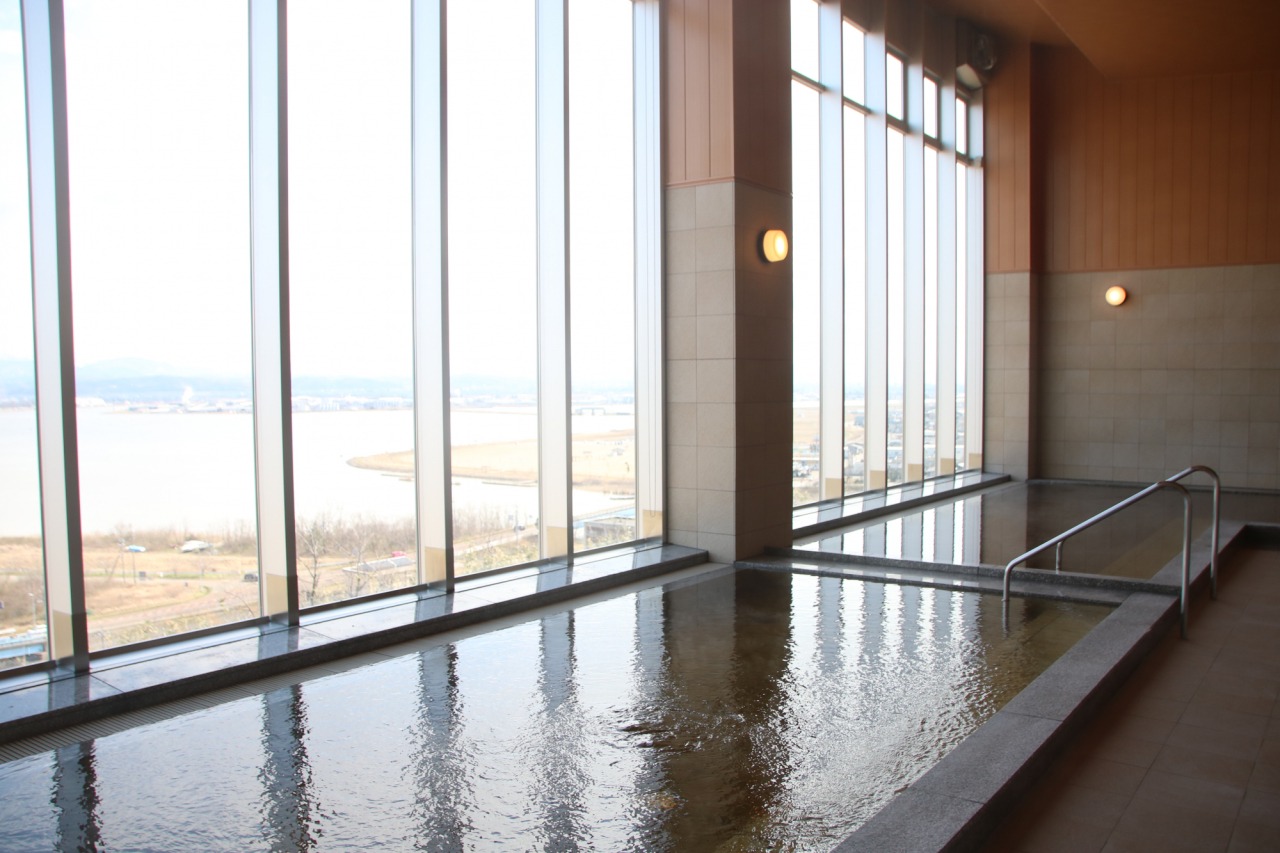 地元の方に愛され続けるほのぼの湯は、お風呂が2階にあり温泉内から白山・立山連峰と眼前に広がる河北潟を眺めることができる最高のロケーションです。ワンコインで入れるのも嬉しいポイント!