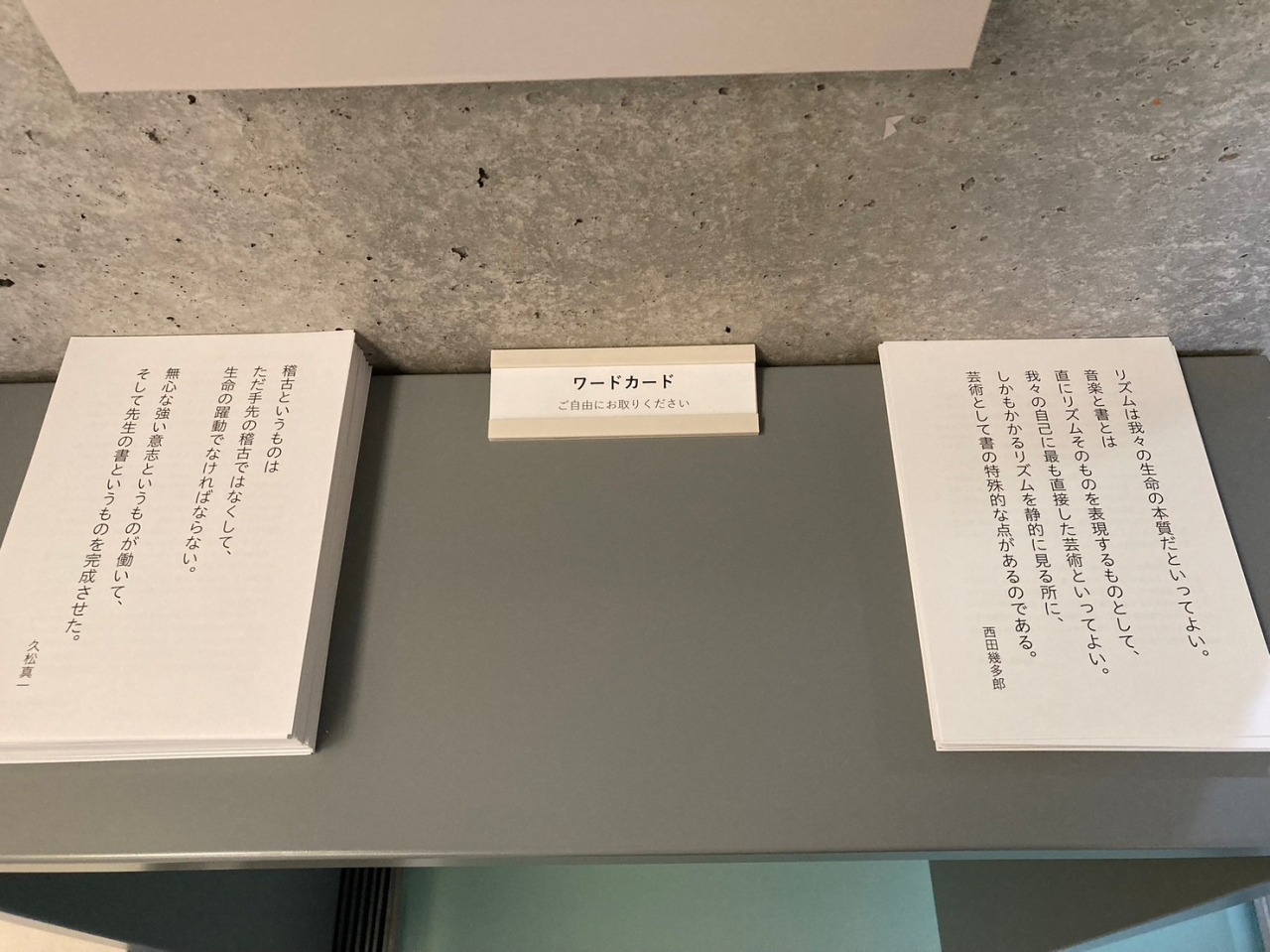 館内のところどころに、自由に待ち帰ることができる西田幾多郎の名言が書かれたワードカードが置かれています。