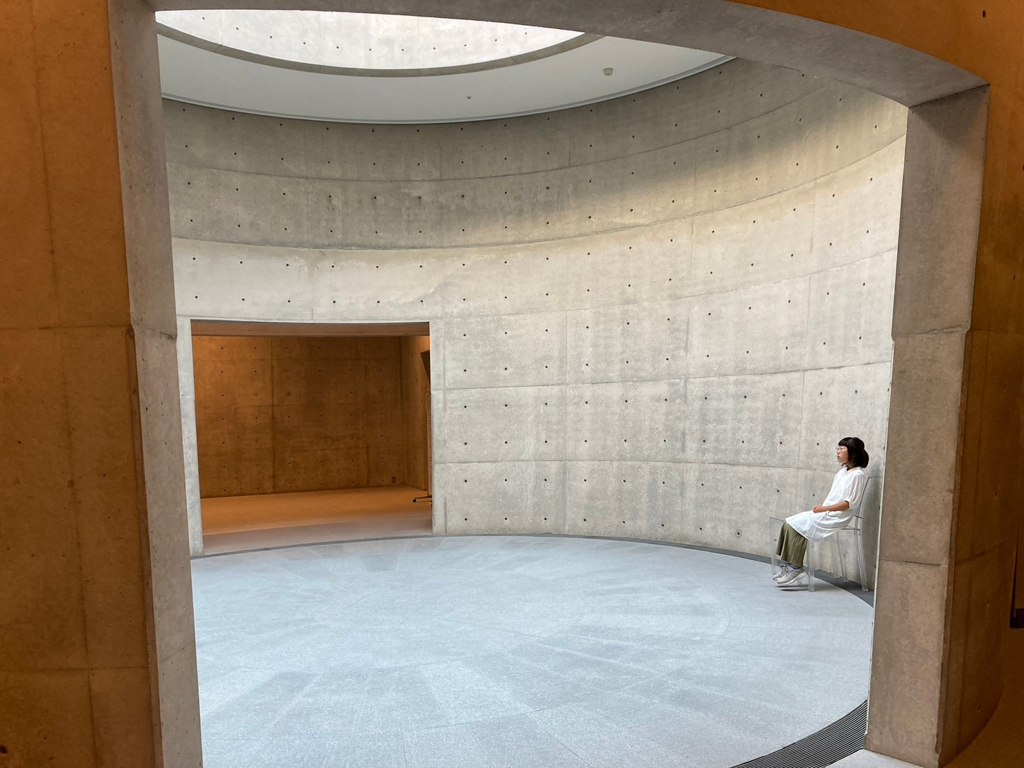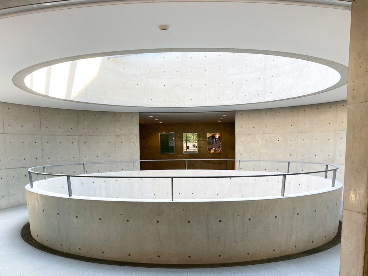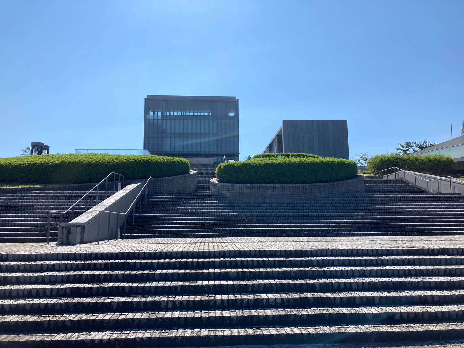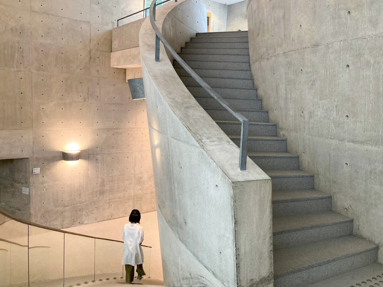 丘陵の斜面を利用した階段庭園とコンクリートにガラス張りの外観との調和が素晴らしく、「考えること」をテーマに作られているため、思索の空間や対話の空間があり、哲学の世界を体感できるような工夫が随所に見られます。