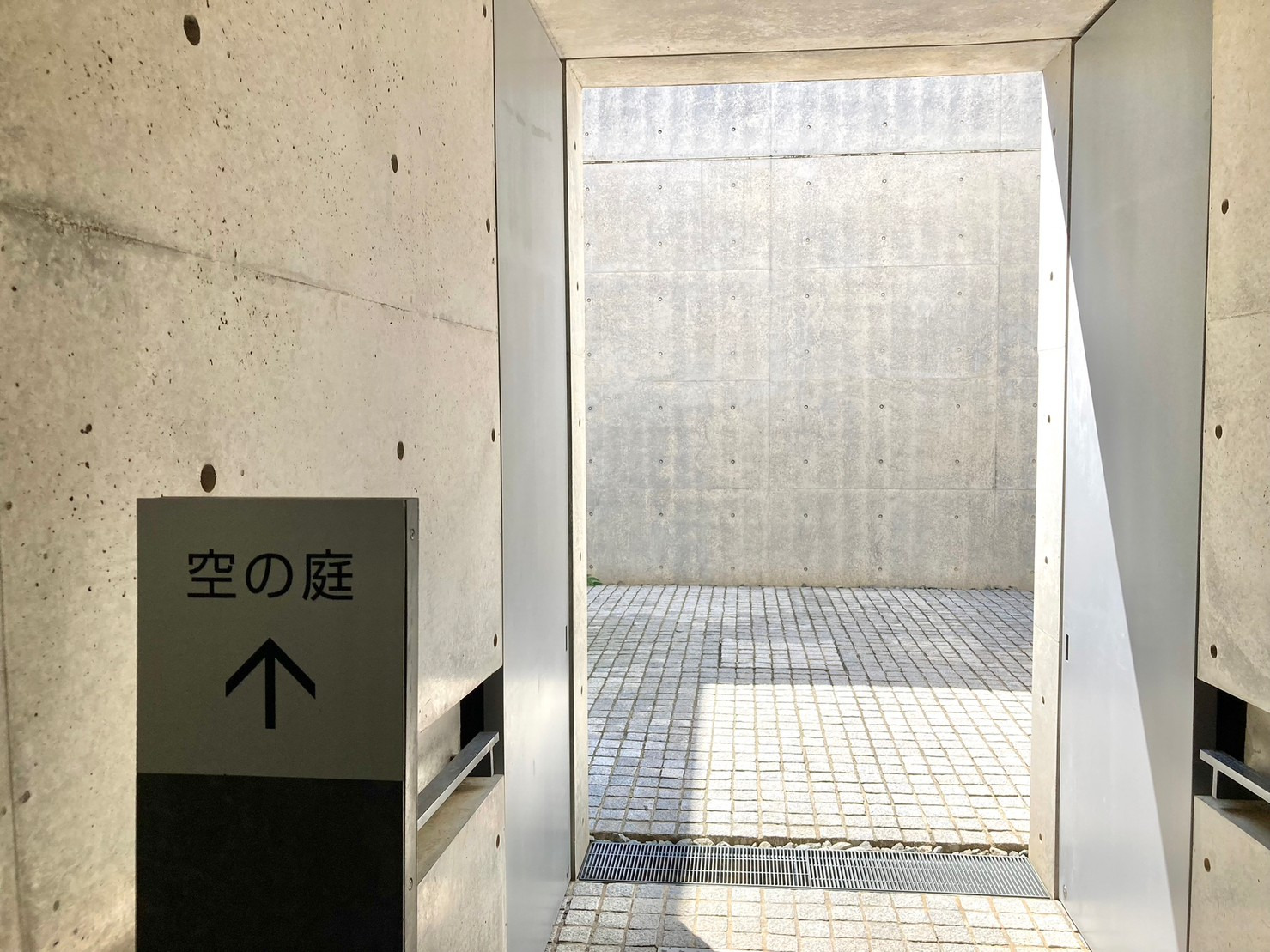 空の庭は直線の壁に囲まれ、四角く仕切られた空からは自然のままに雨や雪が降り注ぐ、思索のための空間となっています。