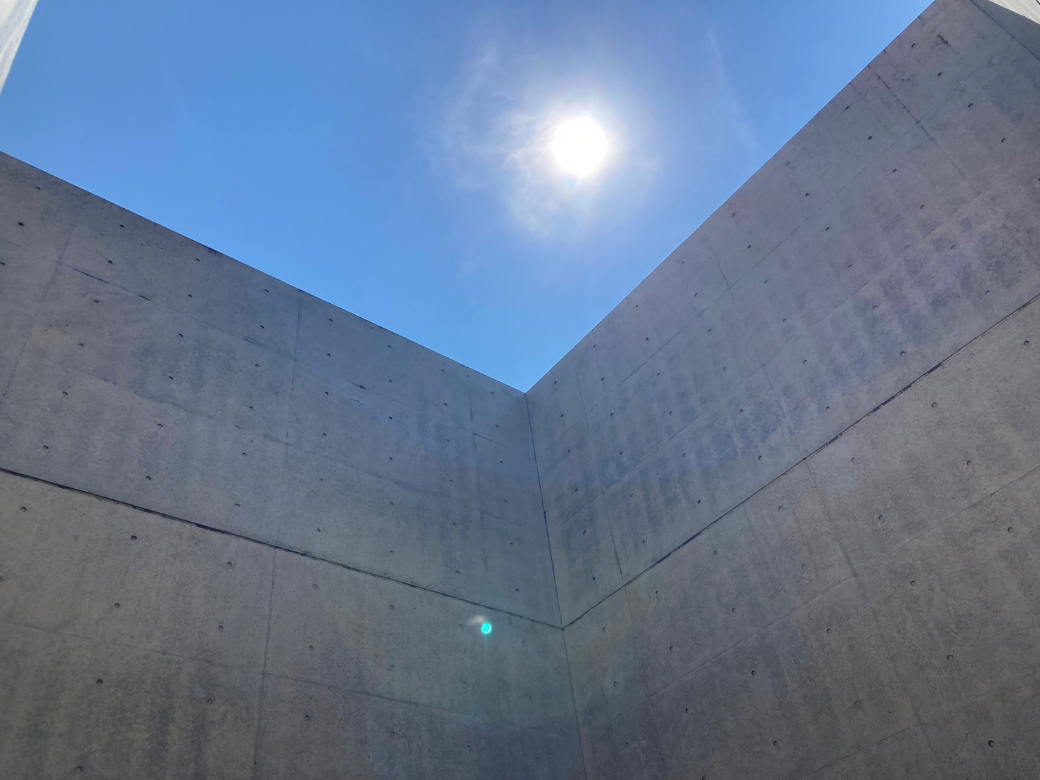 この日は晴れていたので外に出ると、四角い青空が見えました。