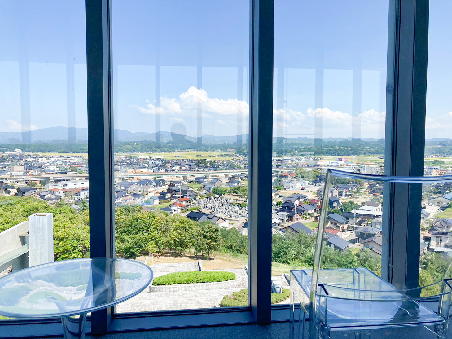 哲学館からは車で6分ほど。かほくの穏やかな景色を眺めながら、紅茶とワッフルでゆったり休憩ができます。