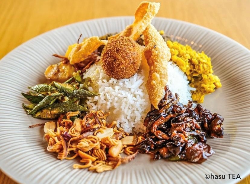 カレーリーフやクミンなど、体に良いスパイスと野菜をたっぷり使用したスリランカカレーは、混ぜて食べるのが本場流。一口ずつ変化する味をぜひお楽しみください!