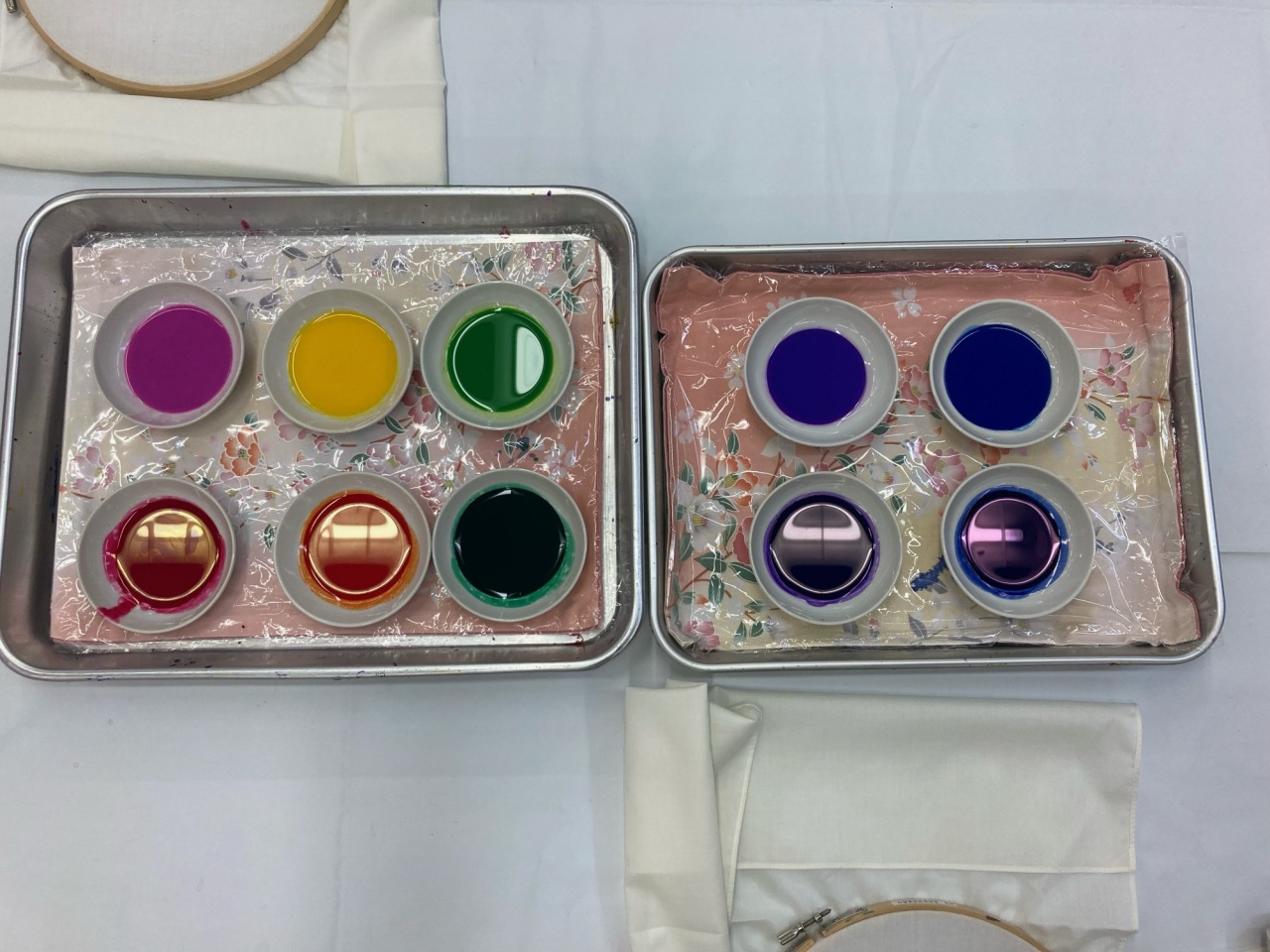 加賀友禅は本来、加賀五彩と呼ばれる5色をメインに使って描かれますが、今回は5色の濃淡で計10色が用意されていました。