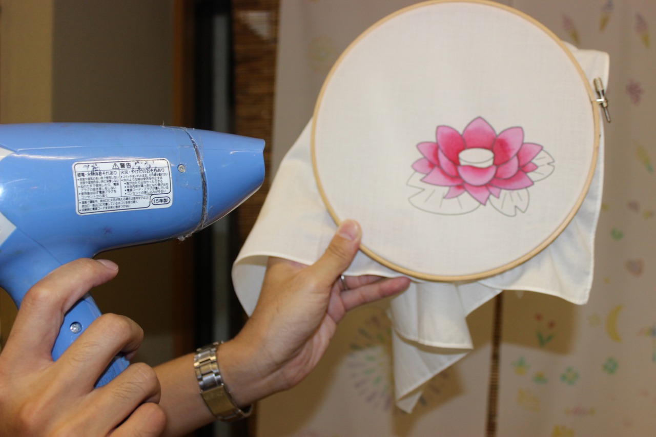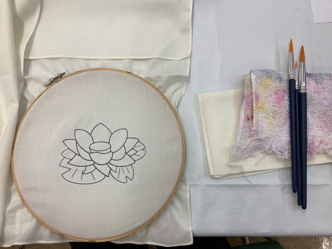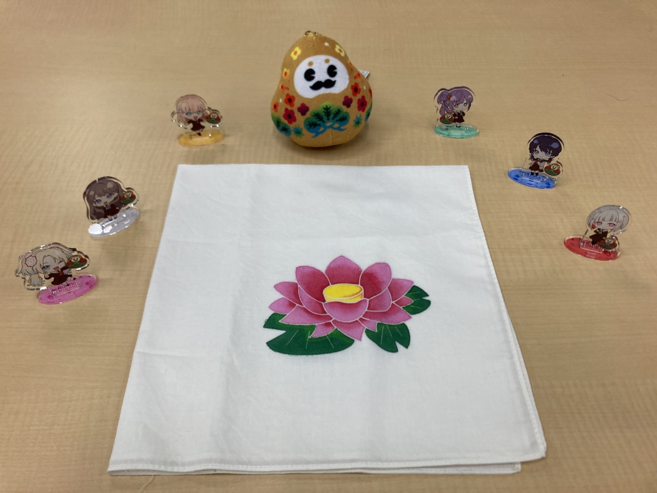今回は、声優の皆さんも体験したハンカチの手描き体験に挑戦します。デザインはもちろん「蓮の花」。