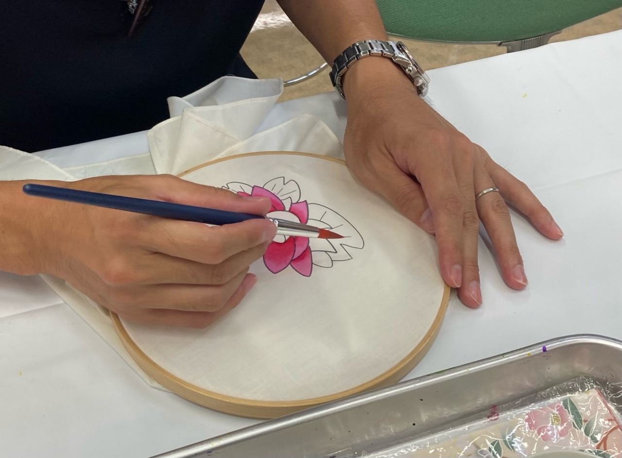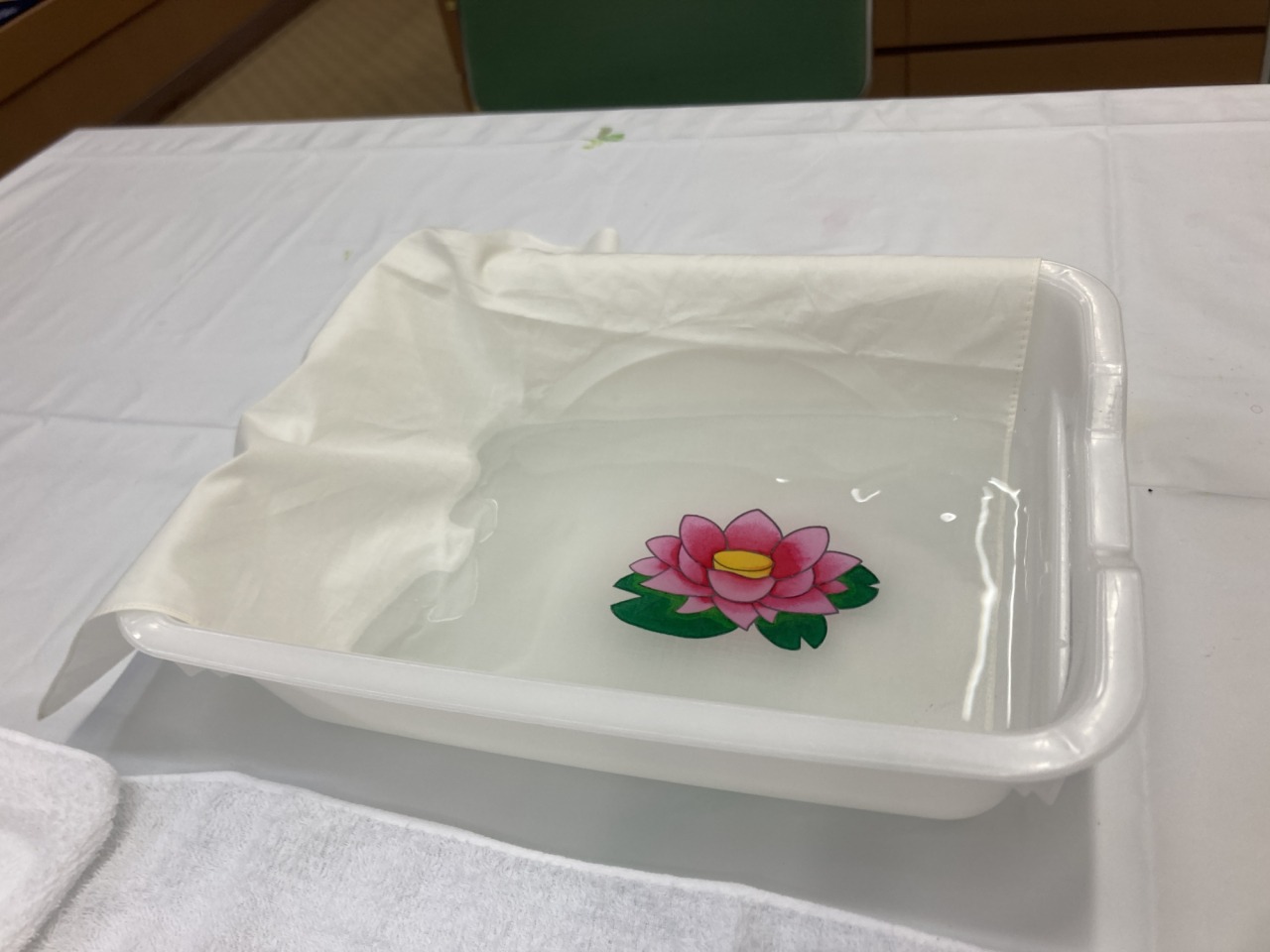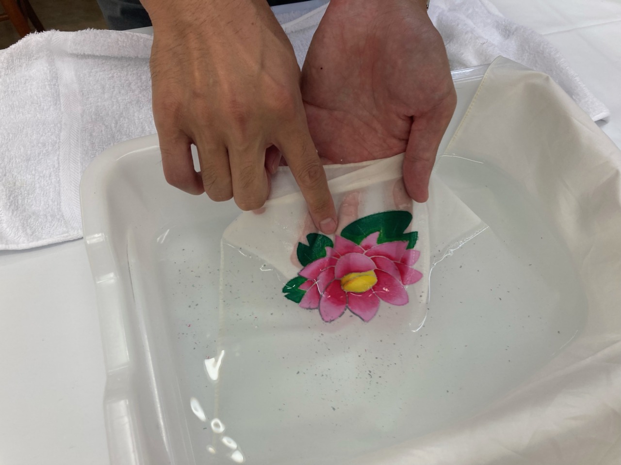 今回は、声優の皆さんも体験したハンカチの手描き体験に挑戦します。デザインはもちろん「蓮の花」。