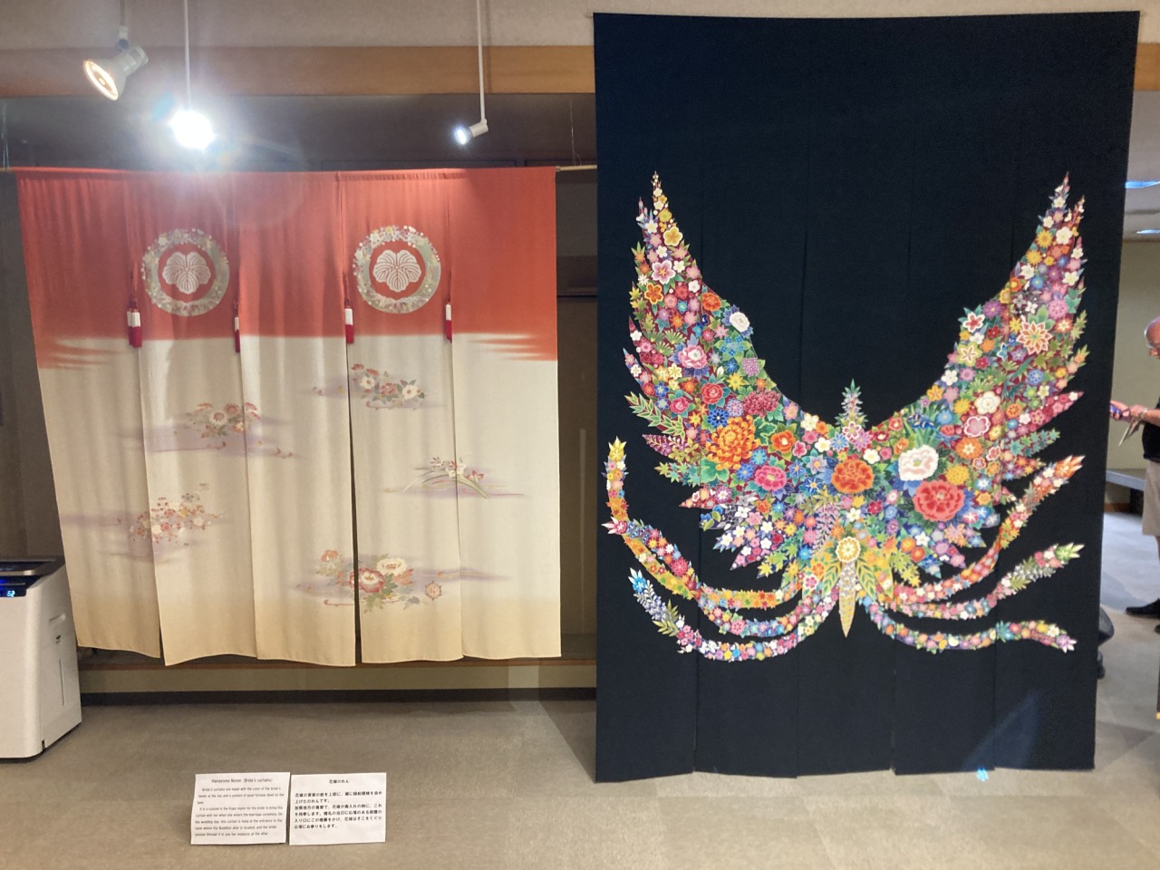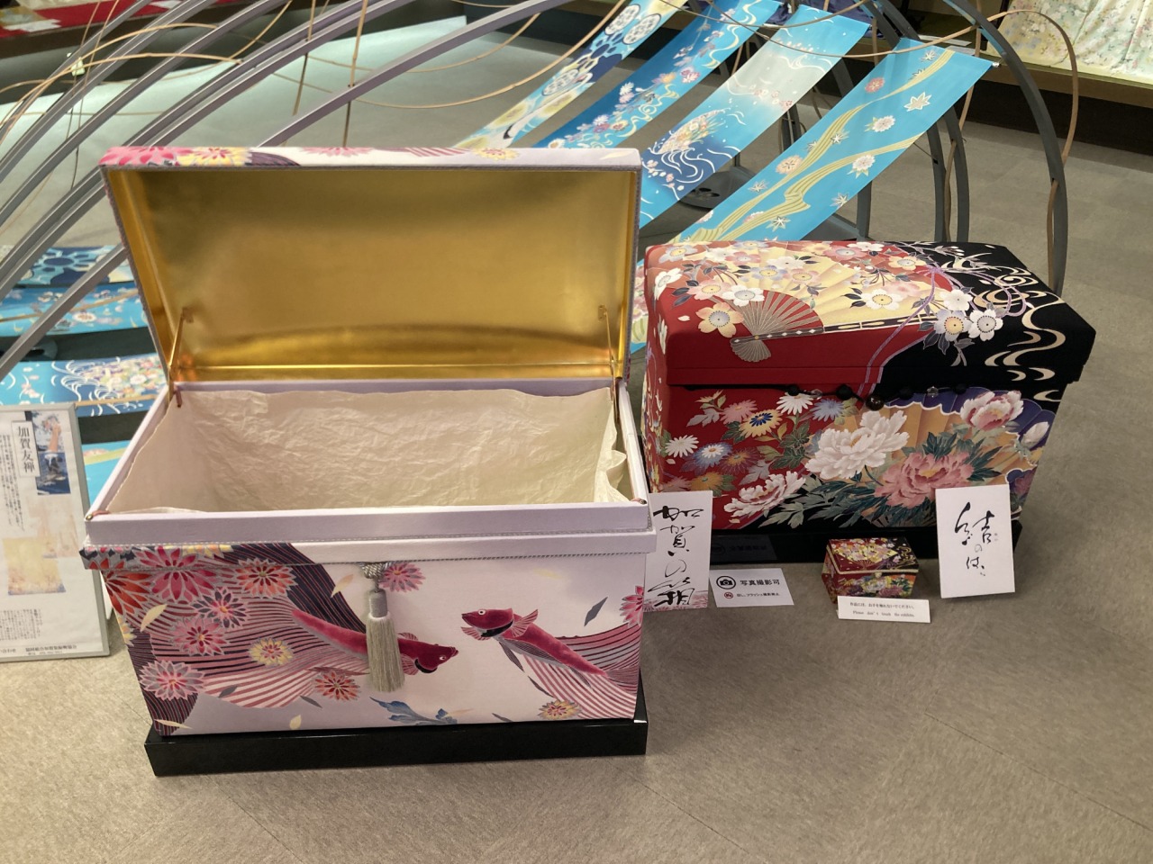 せーはす!でも放映された、写真を撮ると羽が生えたように見えるタペストリー(花鳳凰)や加賀友禅を用いた茶箱や小物はこちらで見学できますよ。