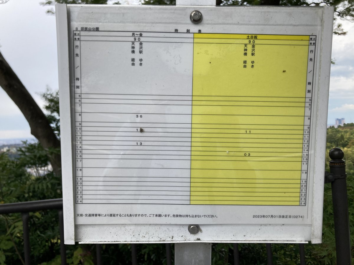 卯辰山見晴らし台は標高約140mの位置にあるため、路線バスか車が主な交通手段になります。