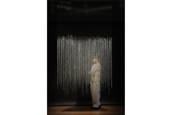 作品<波をみる 浜をみる>は、たくさんのコイル状のガラスからなり、黒島の海の波際が表されています。