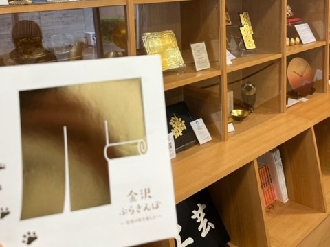 金箔を取り扱うショップの店名や商品名をディスプレイしており、希望者には「金沢ぶらさんぽ」というパンフレットがもらえることも!伝統工芸や職人技に惹かれる方はぜひ、受付に尋ねてみてください。