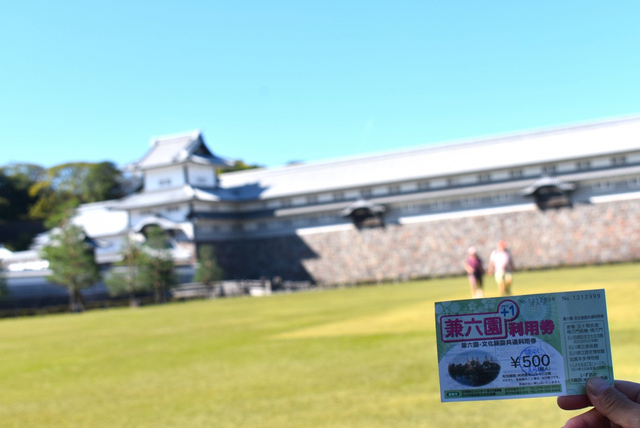 【お得!】「兼六園+1利用券」の利用で兼六園(大人320円)+金沢城公園有料エリア(大人320円)=500円