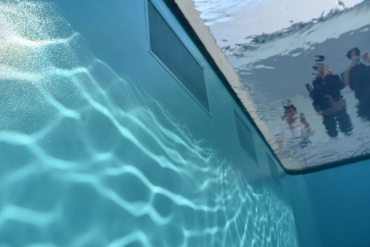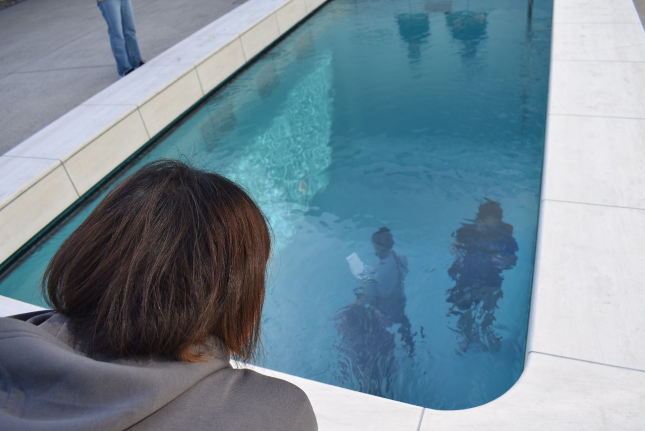 恒久展示作品の中でも開館当初から人気なのがスイミング・プールです。ちなみにプール下部からの観覧は予約制。入場の順番待ち予約(当日朝9時予約開始)が必要です。WEB、もしくは館内予約機をご利用ください。