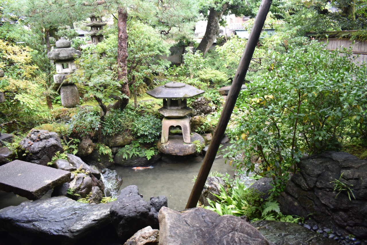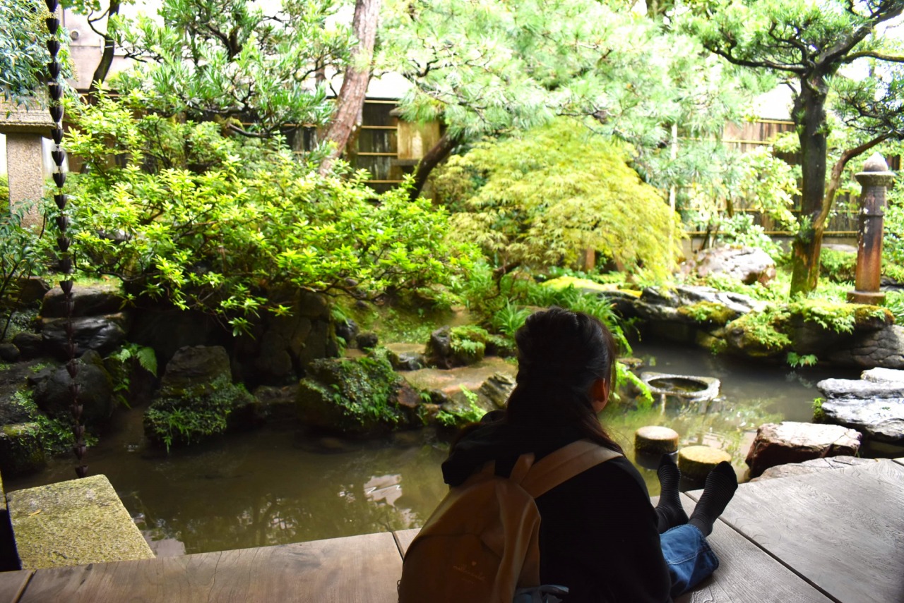 約 300 ㎡の庭園は、兼六園とはまた異なった風情の庭を楽しむことができます。濡れ縁に座って庭園を眺めることができ、時が立つのを忘れるほど心地よい空間です。