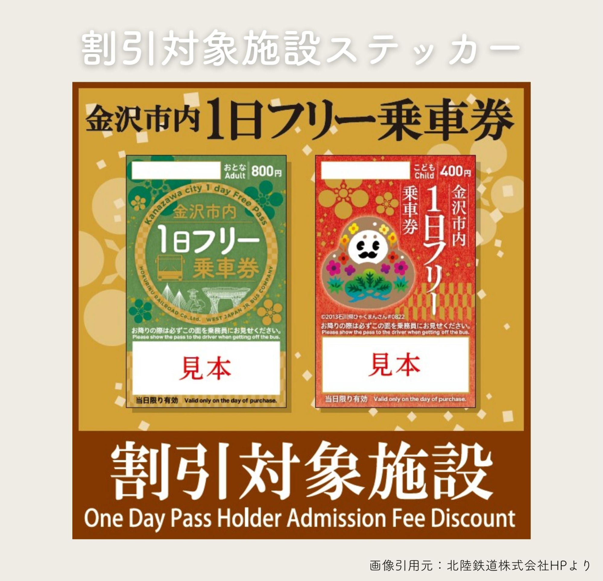 1日フリー乗車券を提示することで、金沢市内で27の施設が乗車日当日に限り割引料金で入場することができます。