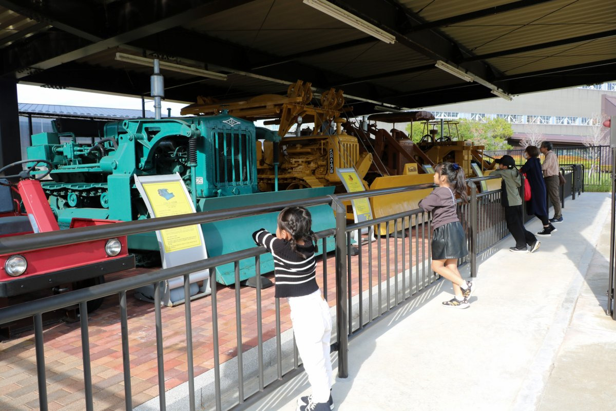 歴代の建機がずらりと並べられていて、その歴史を感じられます。