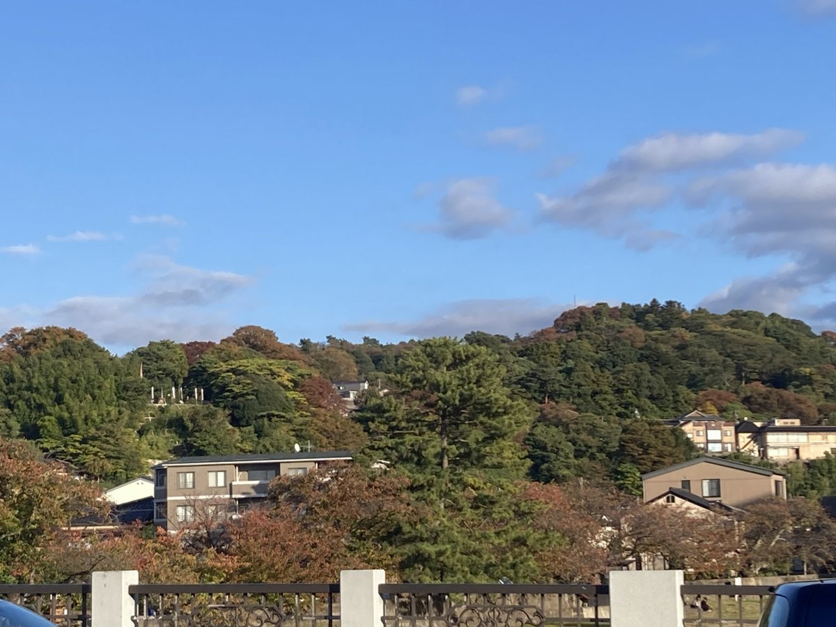ひがし茶屋街と主計町茶屋街を結ぶ浅野川大橋上からは、卯辰山が望めますよ。