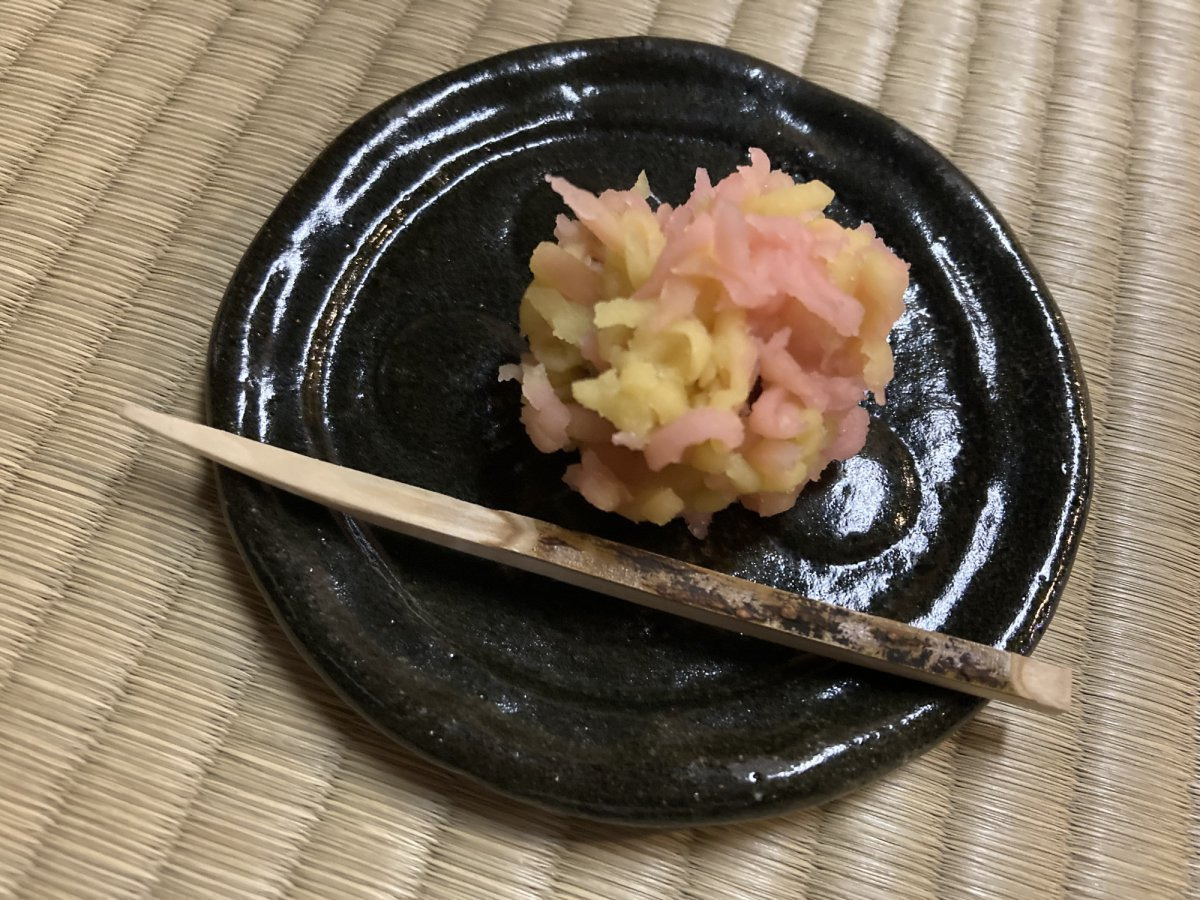 お茶を飲む前に、まずは和菓子を一口。