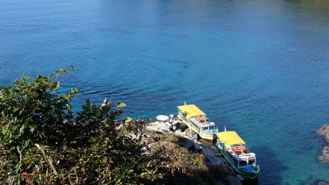 園地内では、お土産売り場や、遊覧船に乗って洞門へ近づくこともできます。