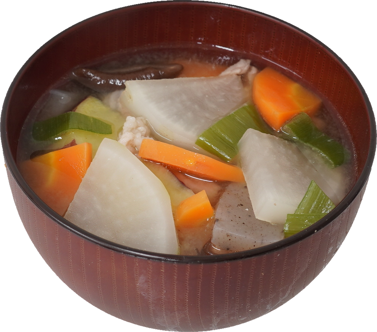 従来の豚汁と違う点は、じゃがいもや里芋ではなく、さつまいもを使う点にあります。