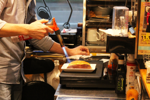 目の前で店主さんがバーナーで焼き目をつけてくれます!カウンター席だからこその楽しみですね♩