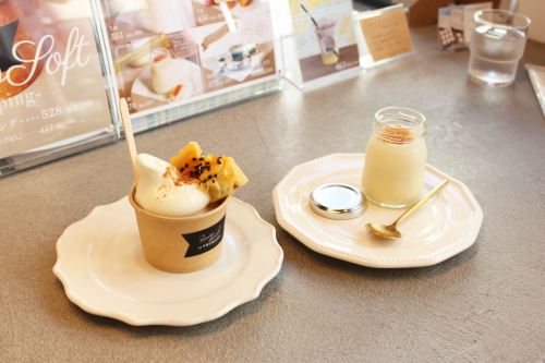 今回注文したのは、同店でも人気の「おいもソフト」と「スイートポテトプリン」です!